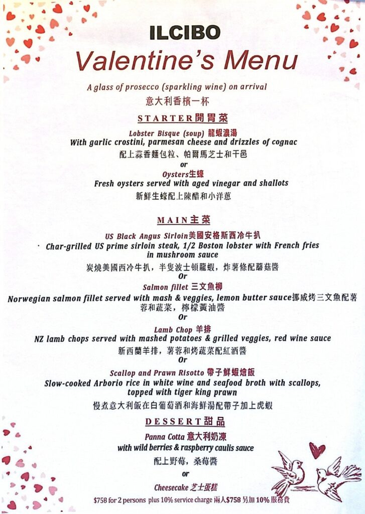 Valentines Menu 2026